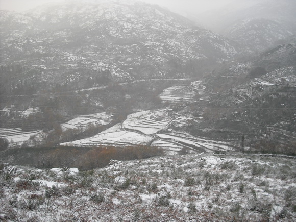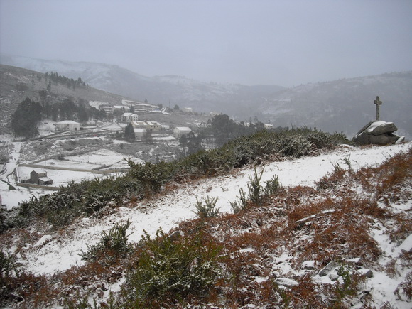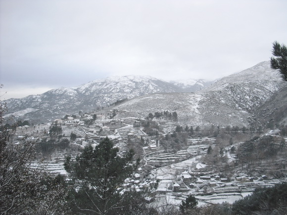 Eis Bordença, coberta de neve. Quando o clima modava de repente, de neve para chuva, o rio de Bordença parecia o início de um dilúvio, quando esses montes lançavam a neve quase junta nas suas corgas que a canalizavam para o rio.
