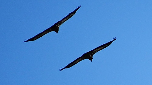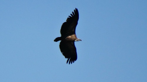Ao atravessarmos a Naia a minha coxa volta a dar sinais e, ao aproximarmo-nos da Ferrada, começamos a ver velhos amigos do Ventor a esvoaçar sobre o Muranho, onde a Serrinha era o pano de fundo. Comecei a apontar a máquina mas ela não podia fazer milagres. De qualquer modo, fiquei a saber que, aqueles, eram, tão só, descendentes dos meus velhos amigos africanos de Moçambique, os mesmos que iam comer os porcos mortos do Garcês, nos arredores de Vila Cabral.